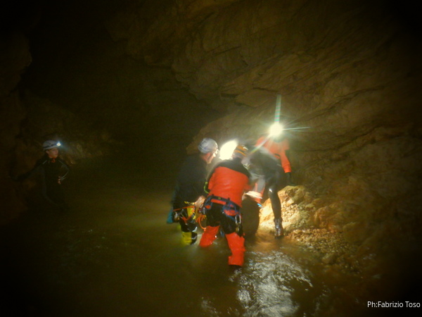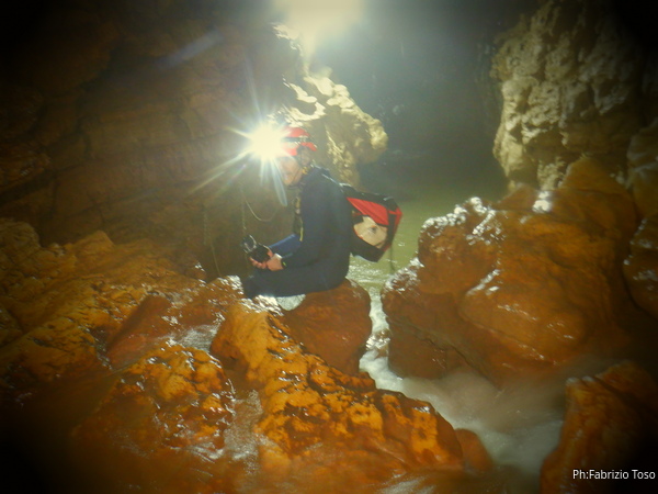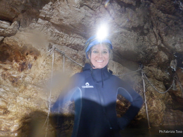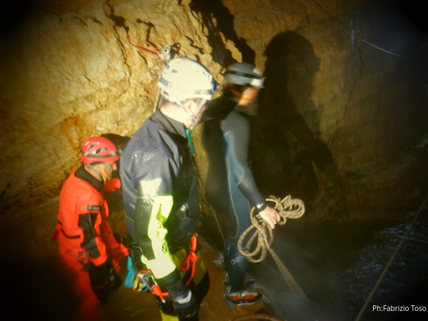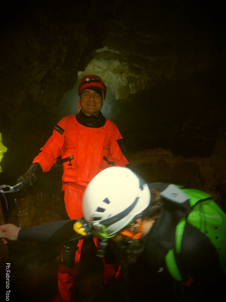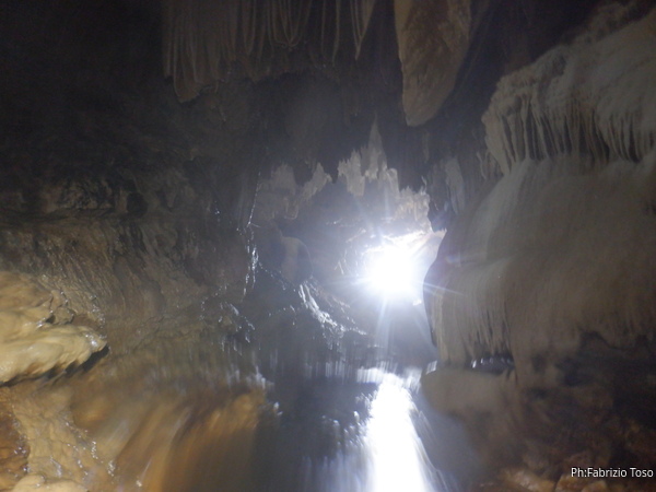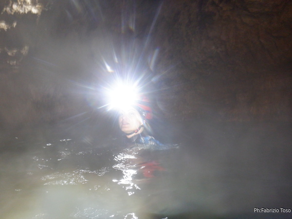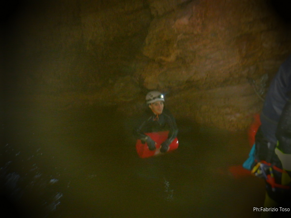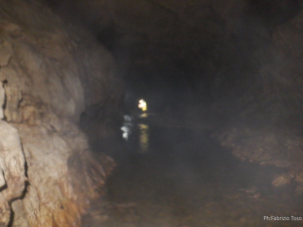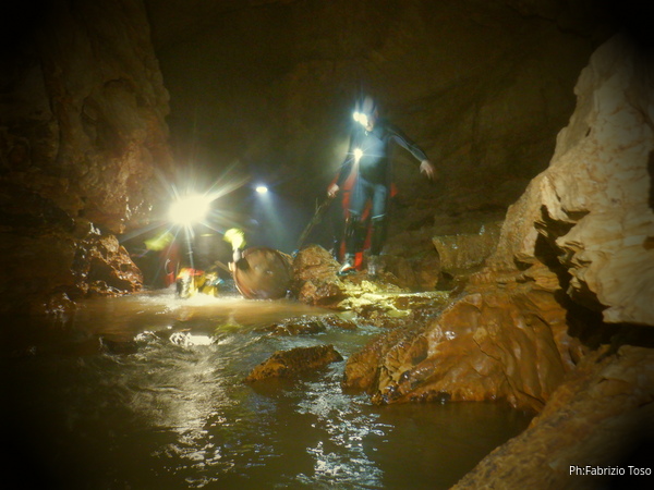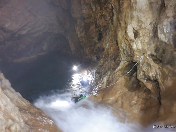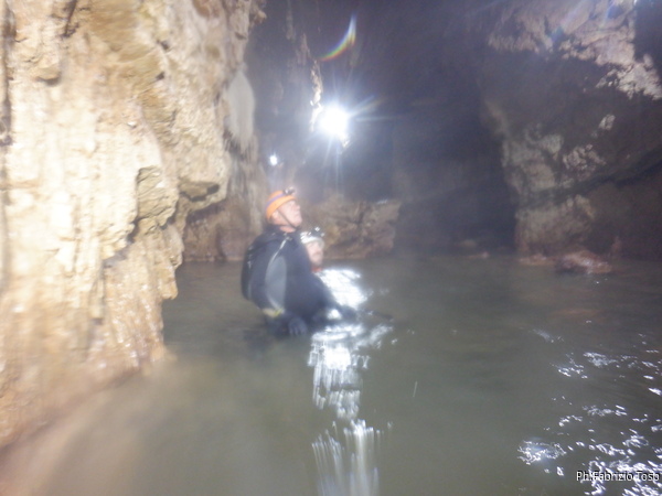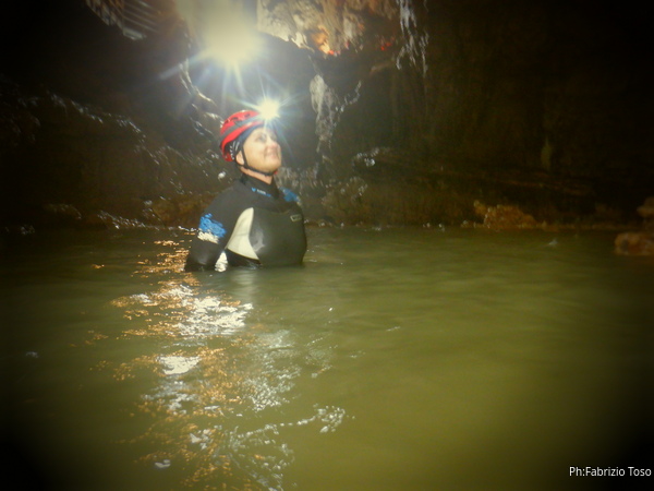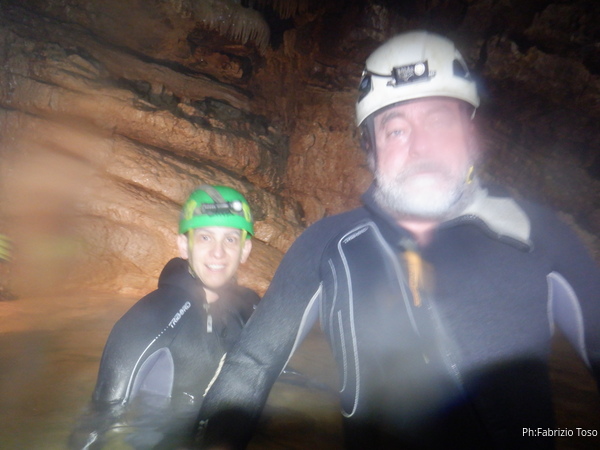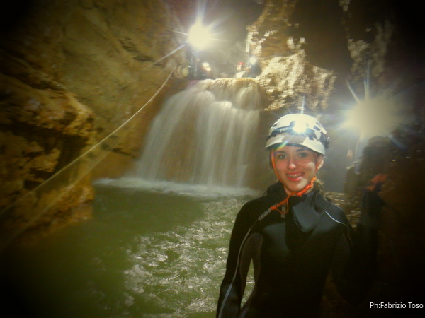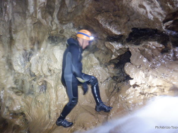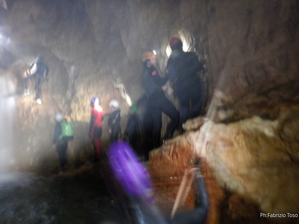 Si inizia ad incontrare degli speleo, forse ci stiamo avvicinando alla cascata. Questo e’ Alessio, se non erro.
