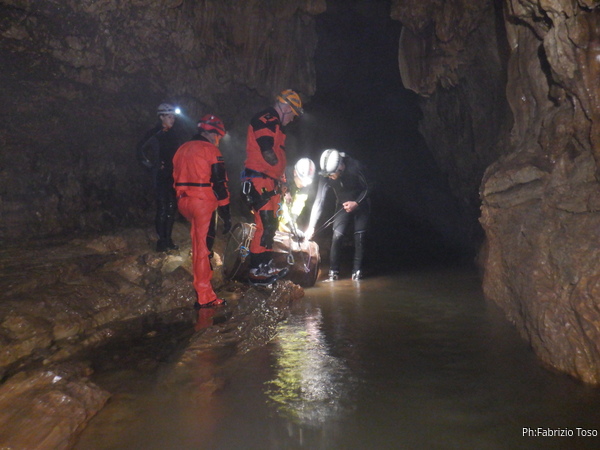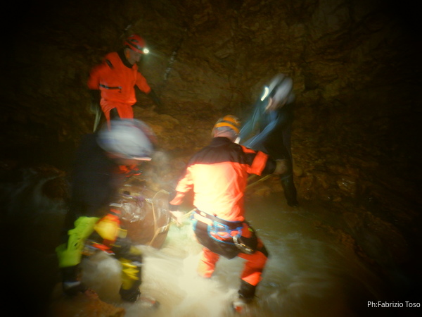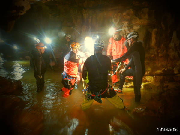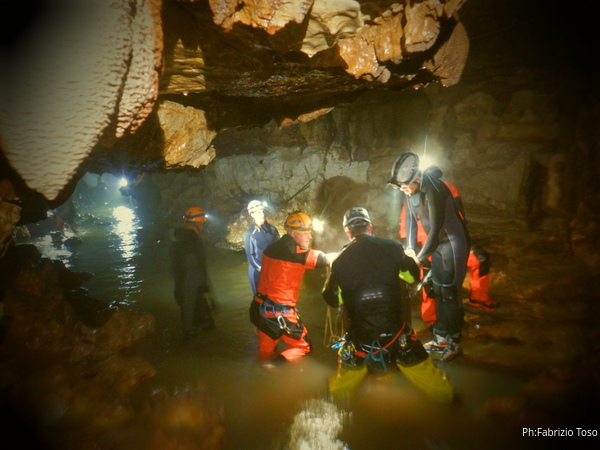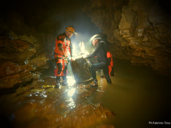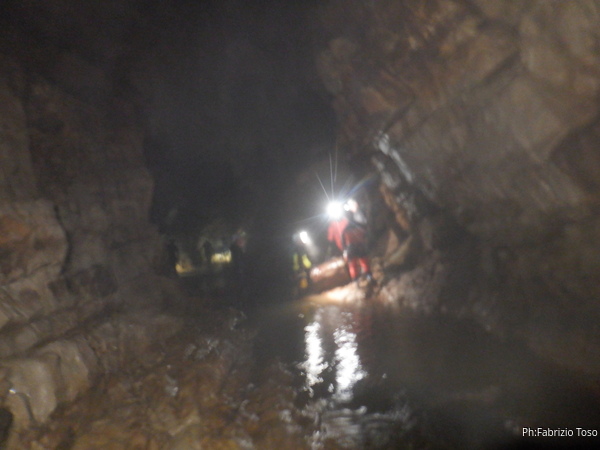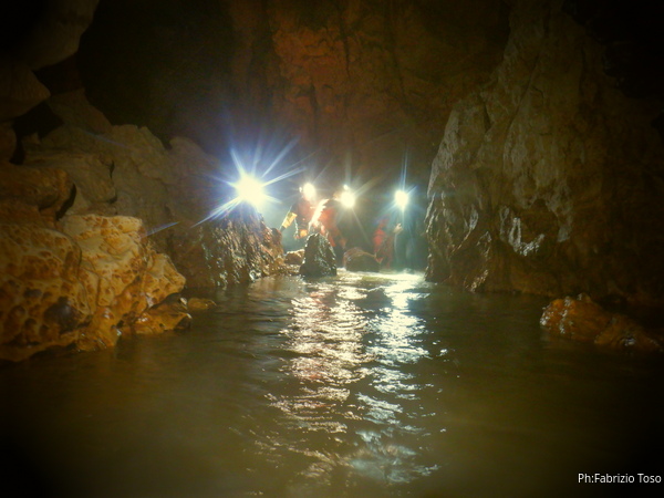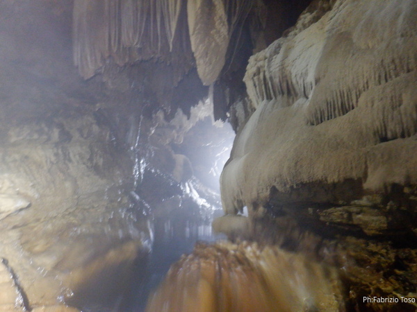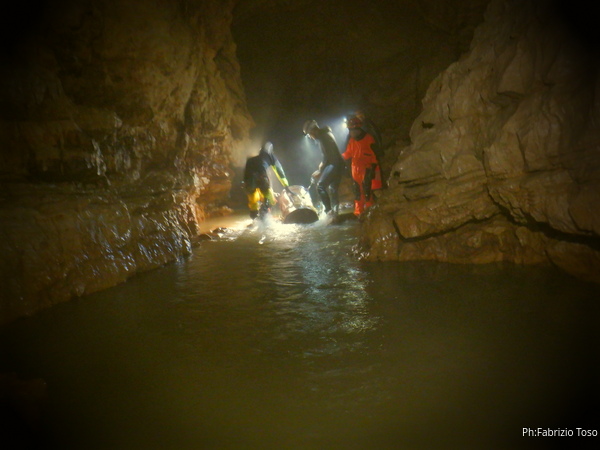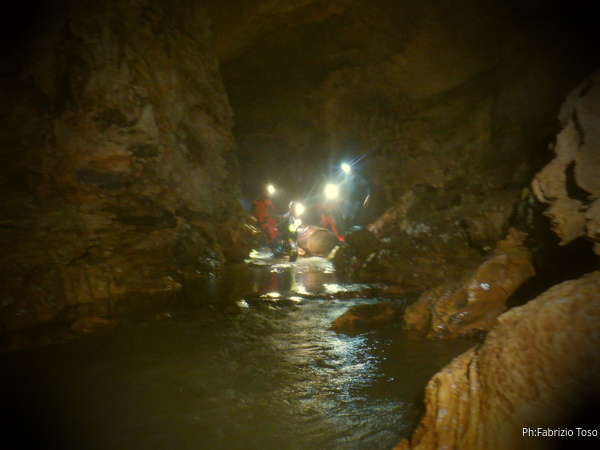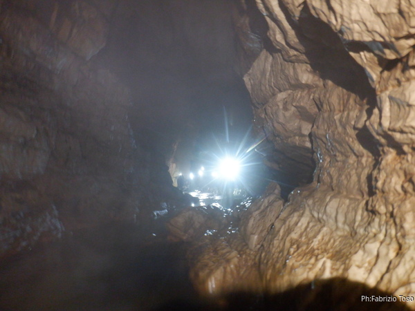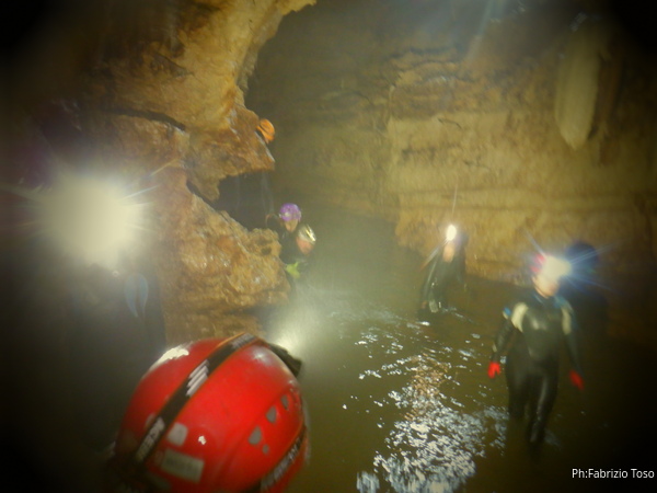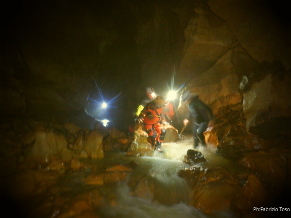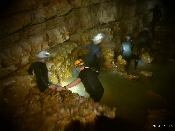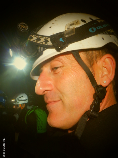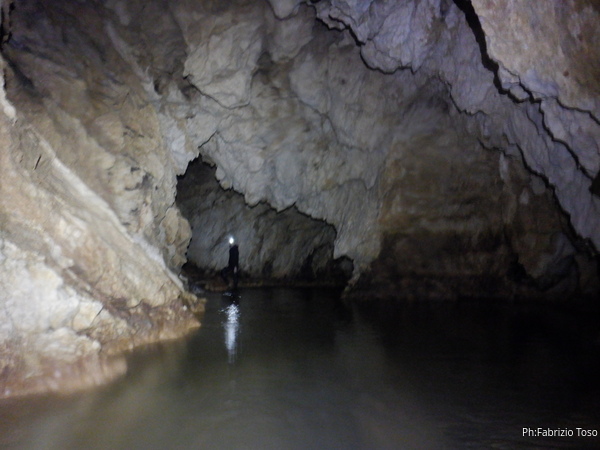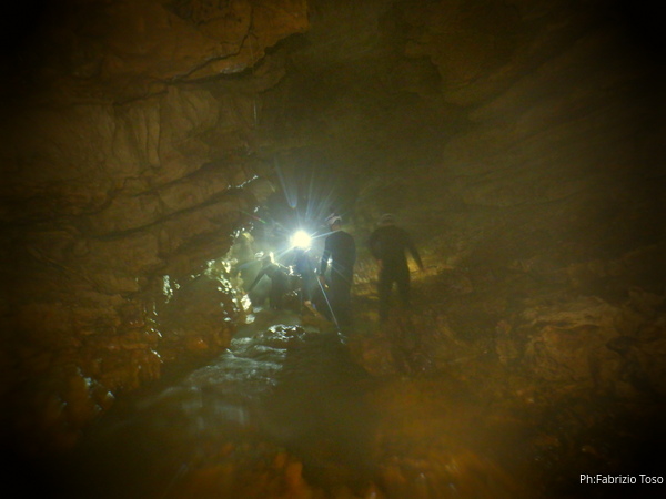 Si inizia ad incontrare degli speleo, forse ci stiamo avvicinando alla cascata. Questo e’ Alessio, se non erro.