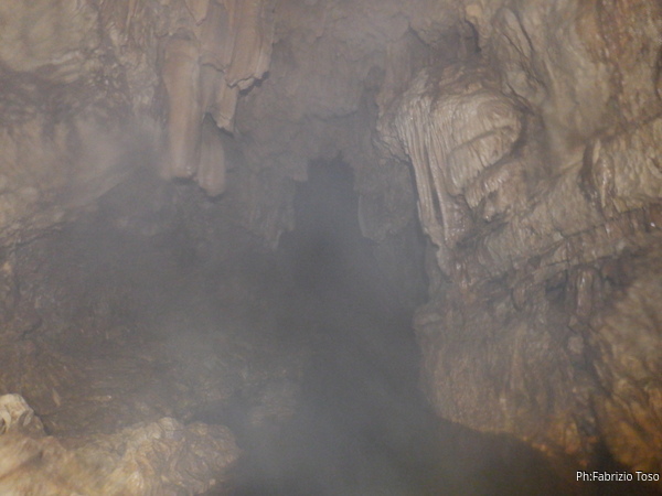 All’incrocio con la passerella della parte turistica si gira decisamente a destra per proseguire la grotta.