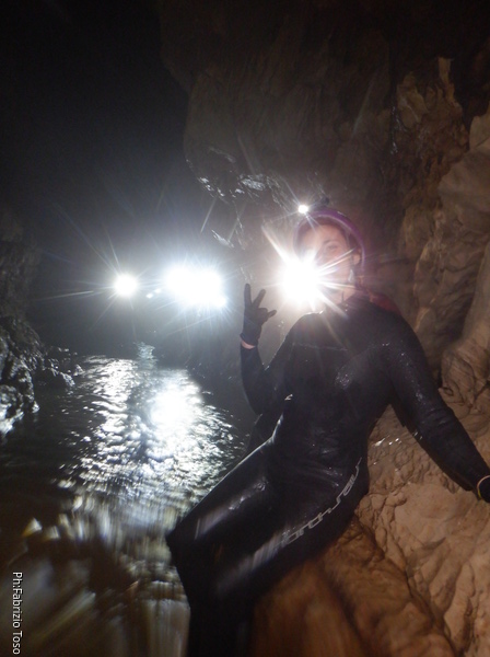 Questa sarebbe Flaminia e sarebbe venuta una foto bella come merita la mia speleo-nipotina se non fosse per una luce importuna che compare al momento sbagliato a coprirle la faccia.