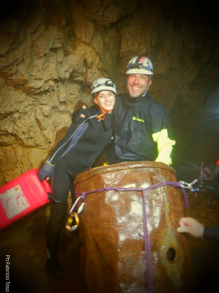 Visto che abbiamo un attimo di sosta per attrezzare il passaggio successivo Fabrizio convince Marta a fare una foto assieme accanto al bidone.