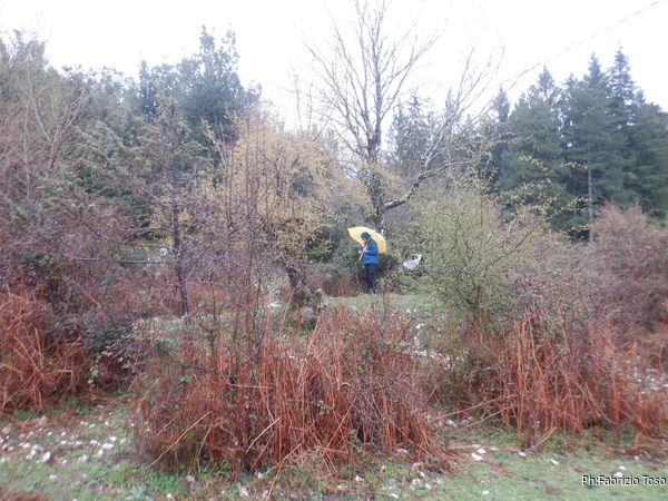 Ecco Luca tra sterpi e alberi che fa la sua parte.