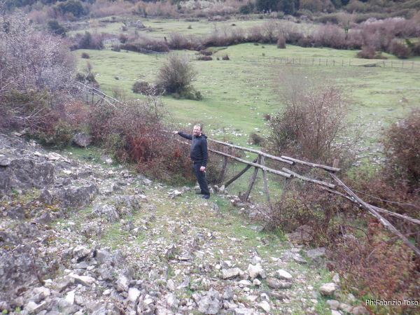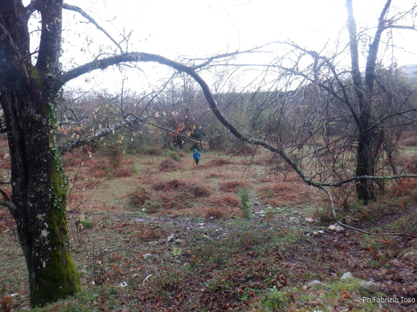 Nulla di fatto. Riprendiamo le auto per le grotte successive, si tratta di 2 inghiottitoi vicini, quelli detti “In contrada Forcella”. Appena sceso dall’auto vedo “nero” sotto un albero e mi incuriosisco.