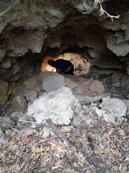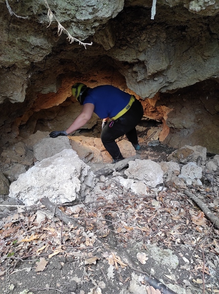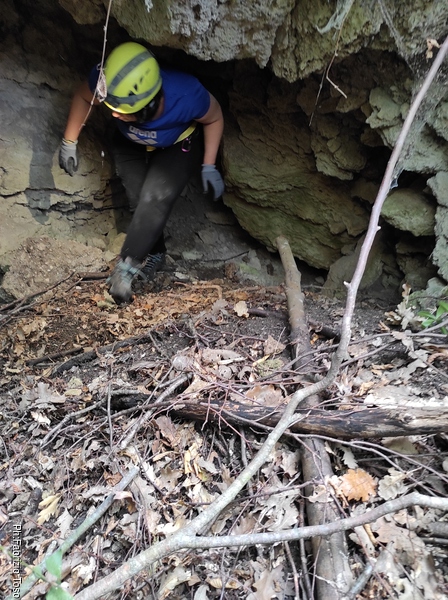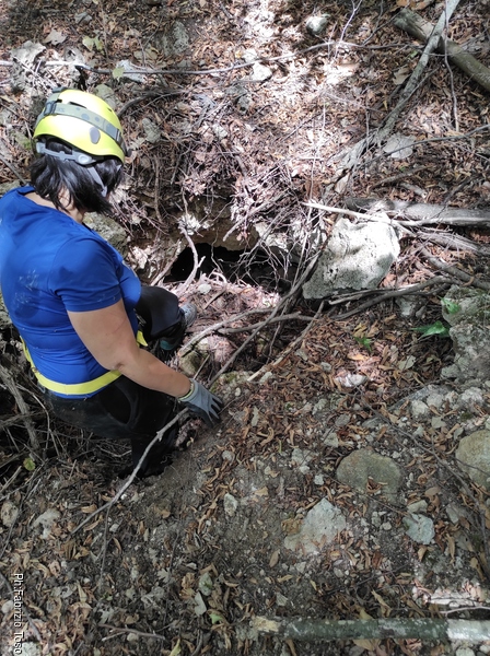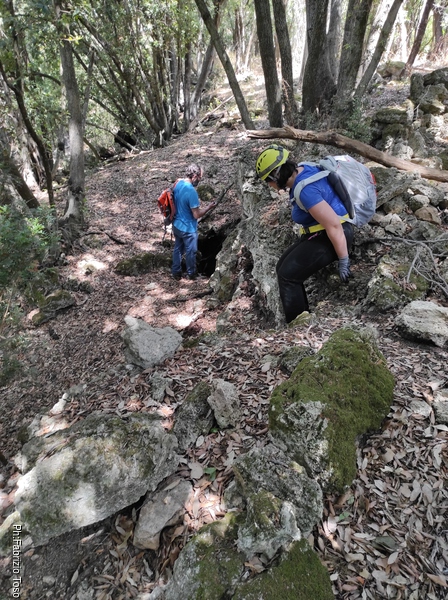 Eccoci alla grotta in catasto, uno scivolo di alcuni metri. Martina si infila per un tratto ma poi lo scivolo diventa troppo scosceso.