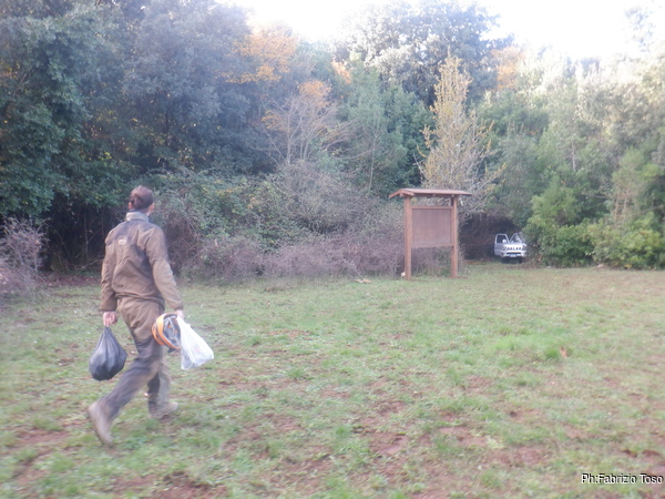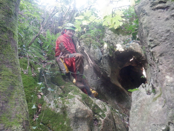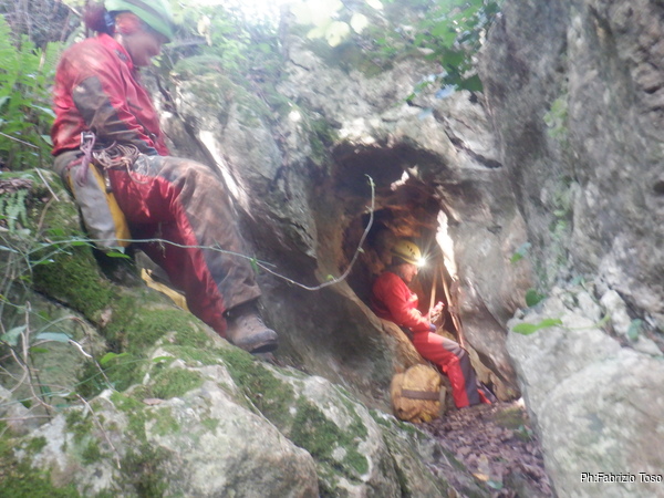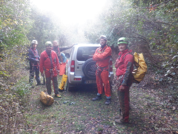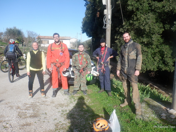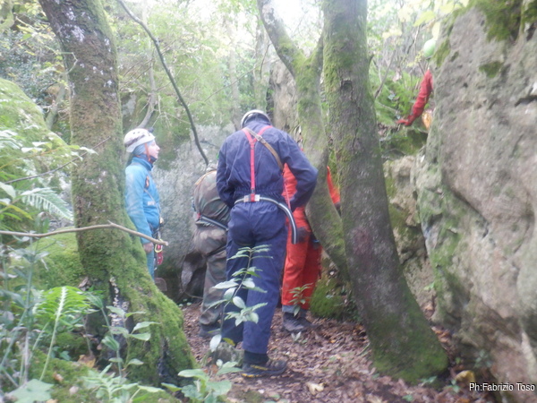 Arrivati all’imbocco del sentiero che porta alla grotta gli allievi, Fabio ed io ci prepariamo gustando il tiepido sole che accompagna questa fresca mattina di dicembre mentre Netta e Fabio, con l’invincibile “Jimmy”, vanno direttamente alla grotta e si preparano la’.
