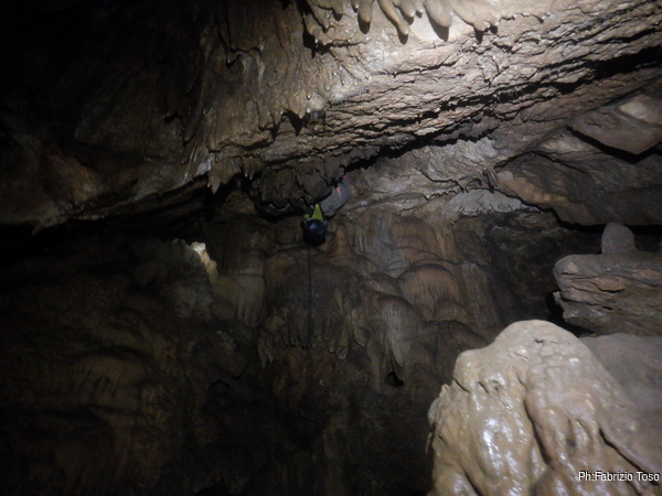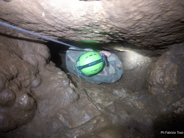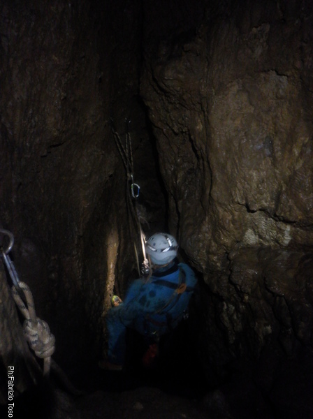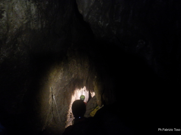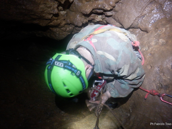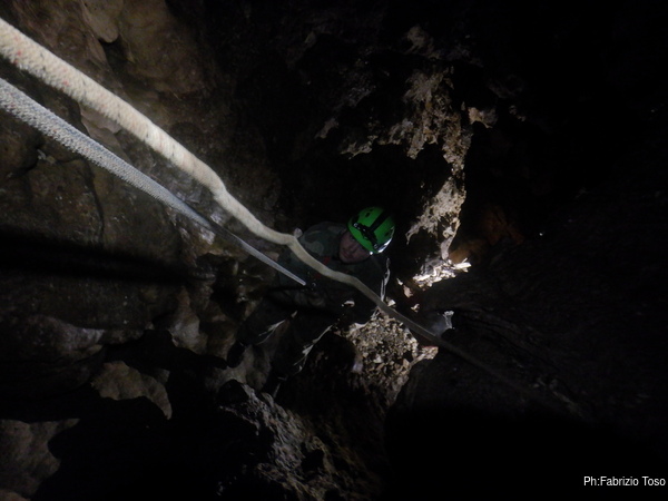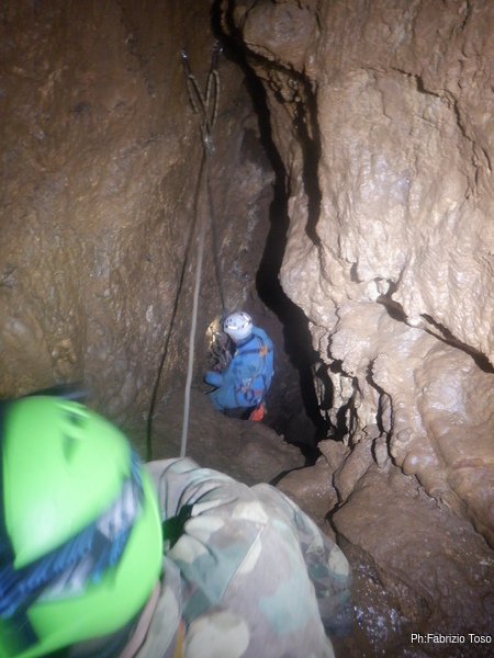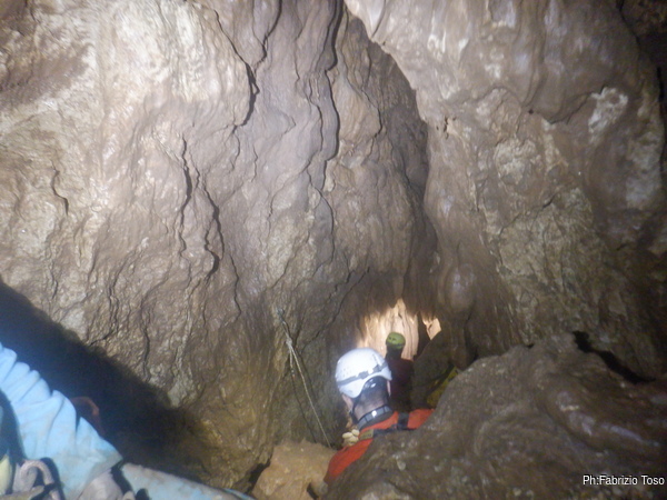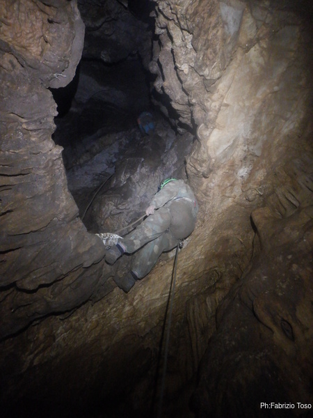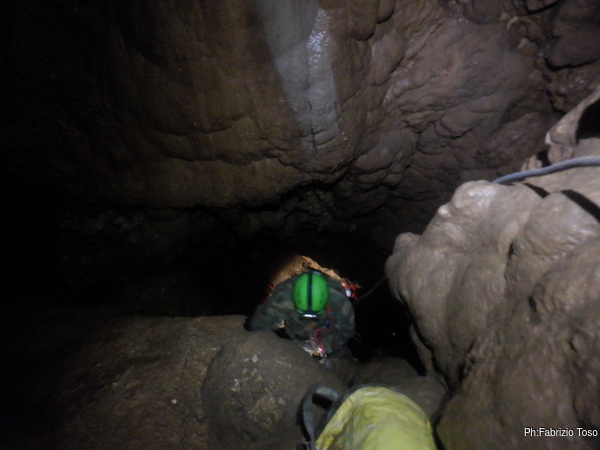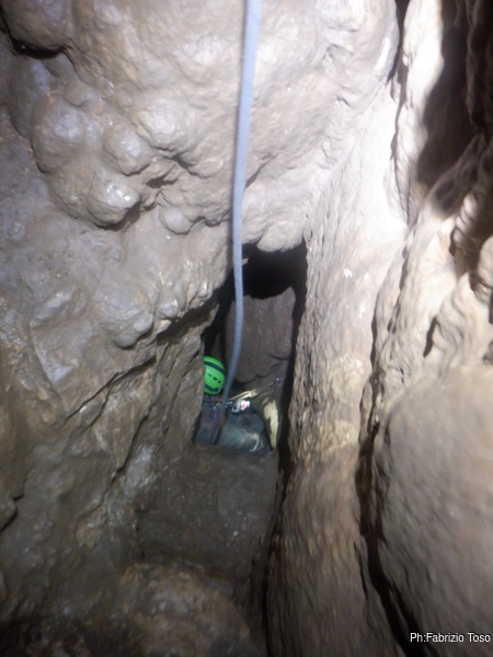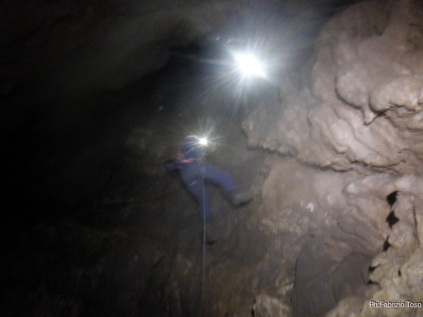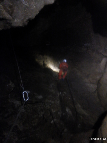 Fabio andra’ avanti fino in fondo al primo pozzo e attendera’ la discesa dei nostri corsari.