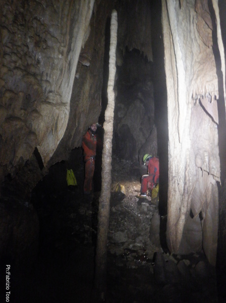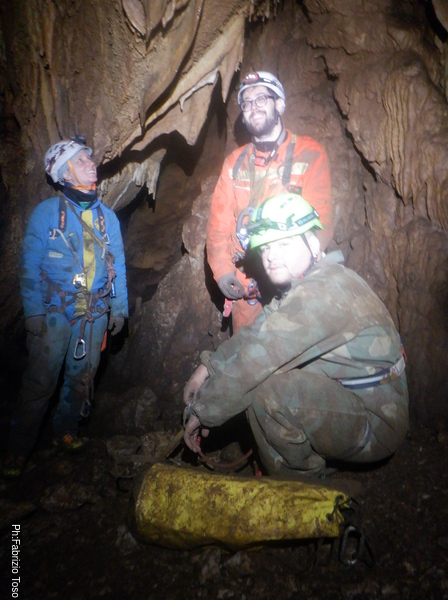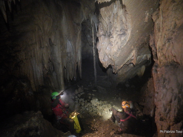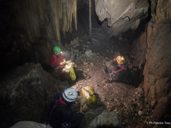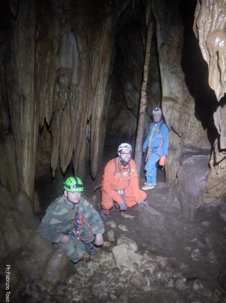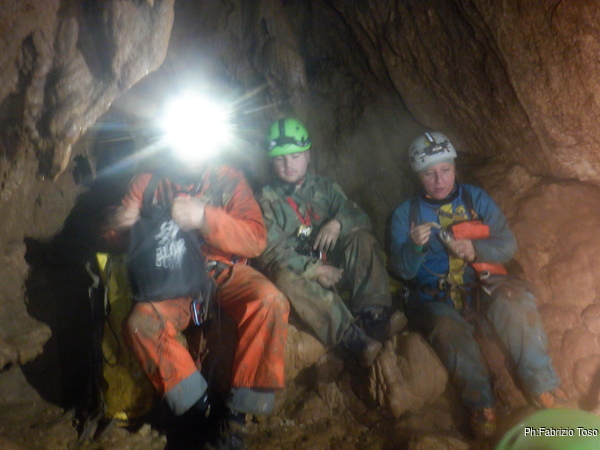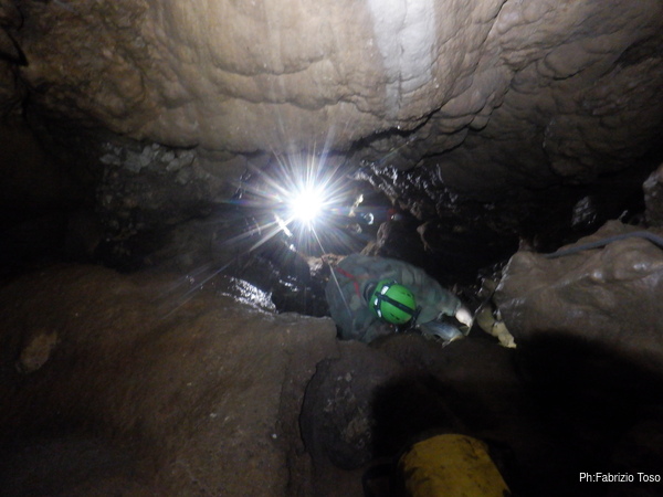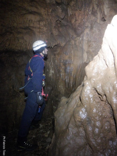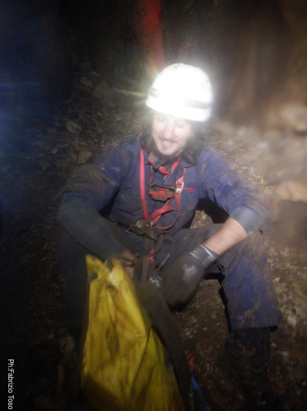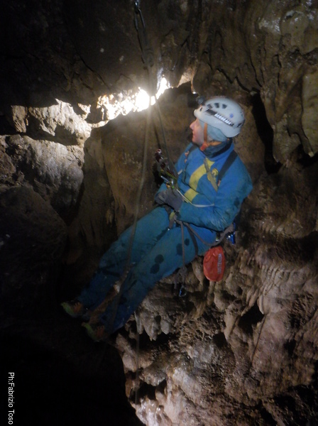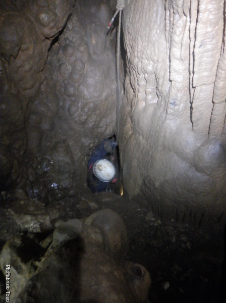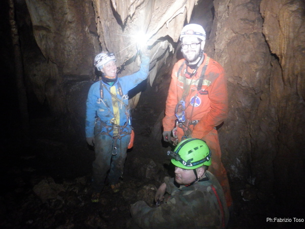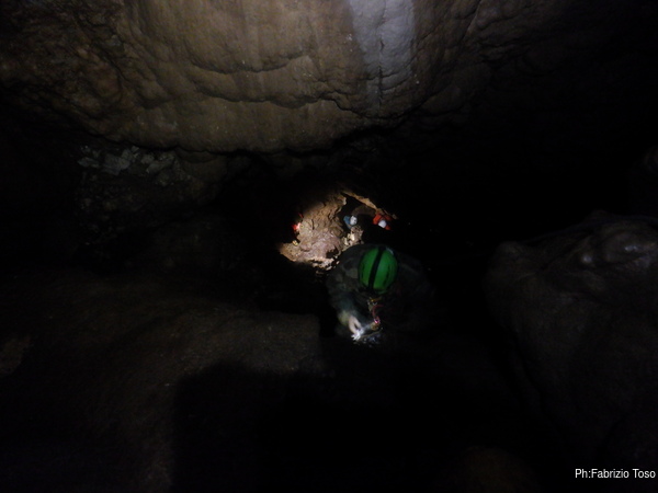 Fabio andra’ avanti fino in fondo al primo pozzo e attendera’ la discesa dei nostri corsari.
