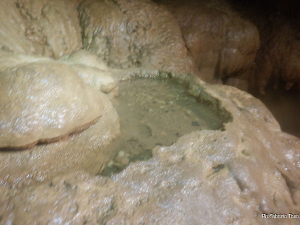Arrivo anche io in fondo al pozzo e mi metto comodo accanto a una simpatica vaschetta ma poi riparto subito per disarmare l’ultimo tratto di corda del breve pozzo terminale che oggi non scenderemo.