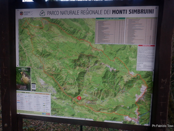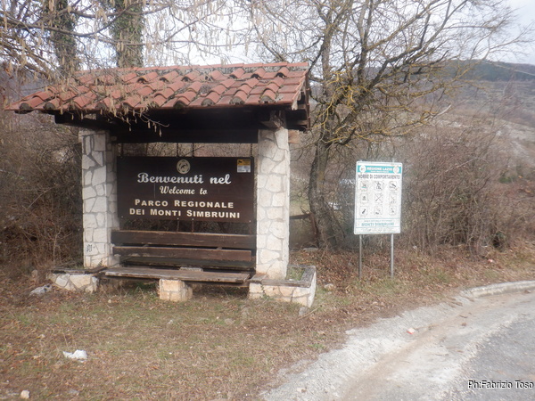Nei pressi della macchina un imponente cartello ci annuncia che siamo i benvenuti nel Parco dei Simbruini.