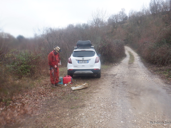 Il meteo dava pioggia per oggi e il cielo sembra intenzionato a mantenere la previsione. Ma noi, nonostante la defezione delle nostre forze giovani, decidiamo di andare a Bucio Felice. Il programma del giorno e’ vario, per prima cosa allargheremo il passaggio iniziale approfittando del fatto che vogliamo provare il demolitore nuovo. Dopo proseguiremo la discesa, magari rivedendo l’armo, per arrivare a scendere l’ultimo pozzo e vedere cosa ci riserva.