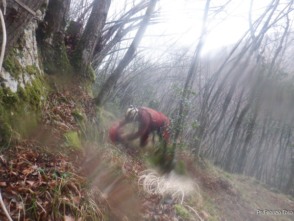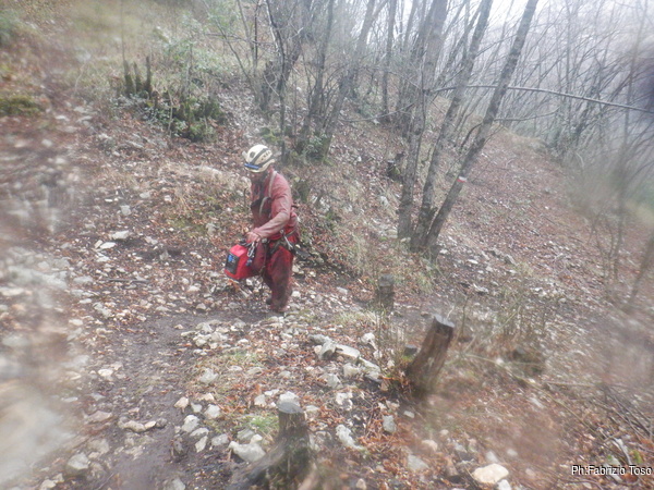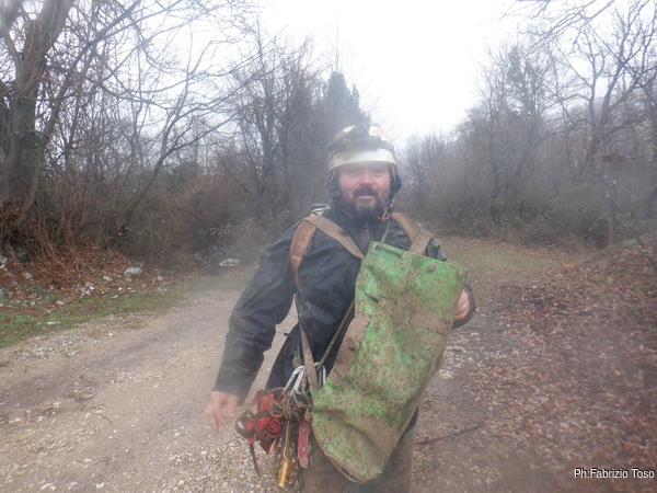Al ritorno sistemiamo la corda per scendere ci armiamo di un pesante zaino per uno e partiamo.