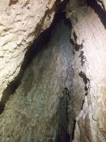 Alla base del pozzo lungo c’e’ una diramazione ma ne rimandiamo la visita al ritorno, anche la volta scorsa abbiamo detto la stessa cosa ma stavolta ho intenzione di mantenere il proposito.