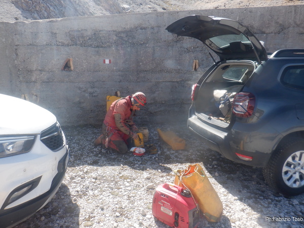 Loro hanno avuto problemi col demolitore a 220 che improvvisamente ha smesso di funzionare. Gabriele si e’ offerto di uscire per controllare il generatore ma nulla si e’ risolto. Nerone e Tarcisio sono rimasti ad aspettare me. Nel frattempo hanno misurato la temperatura e hanno rilevato un 6,3 gradi. Ben fresco!