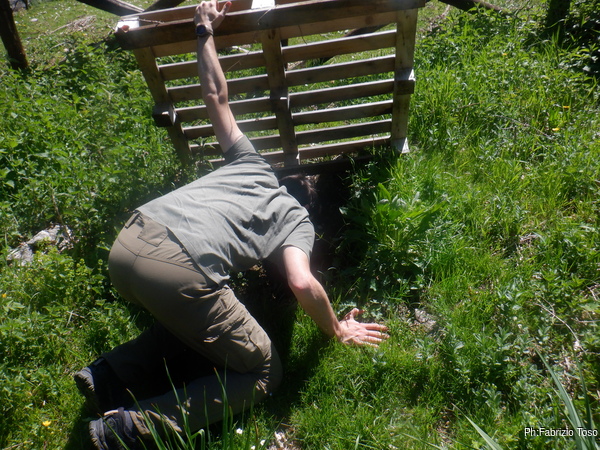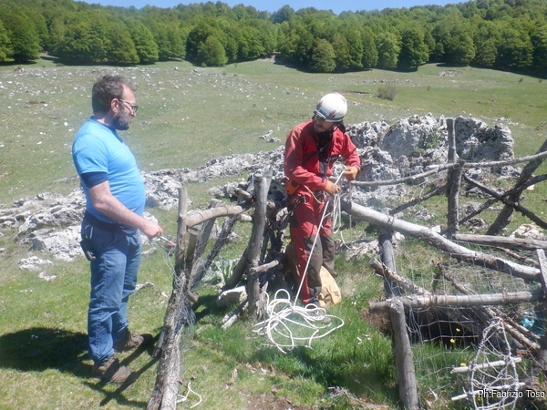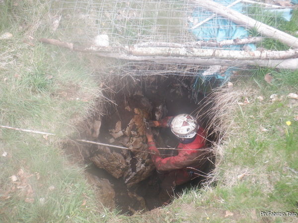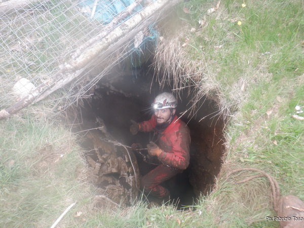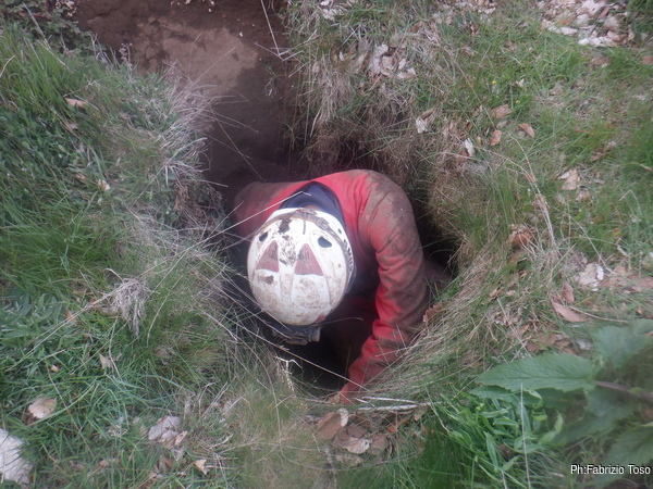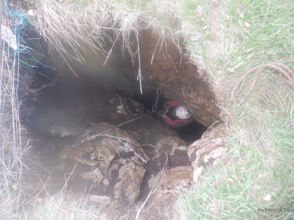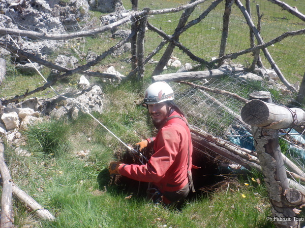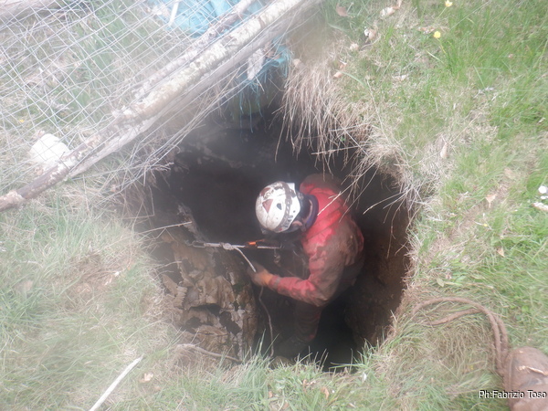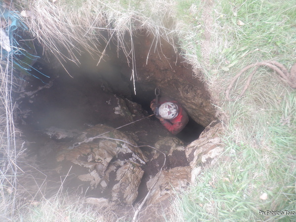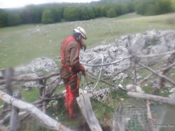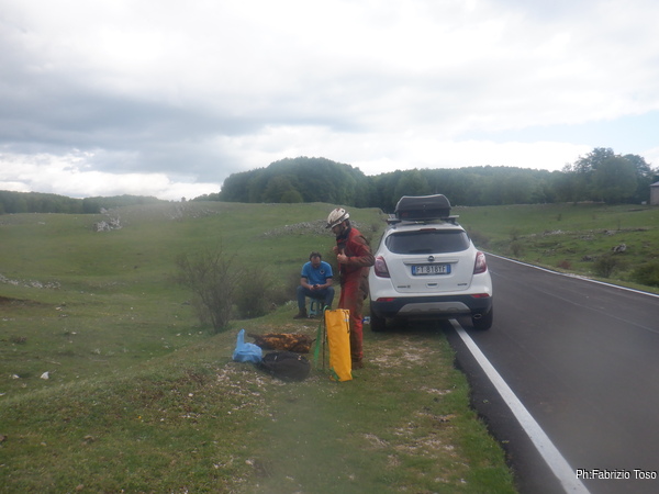 Gabriele non si e’ preparato, strada facendo ha deciso di non essere bendisposto nei confronti del fango di Bucio Nero’ e ha deciso di andare in ricognizione alla ricerca di grotte nei dintorni. Luca si occupa di sistemare la corda d’ingresso.