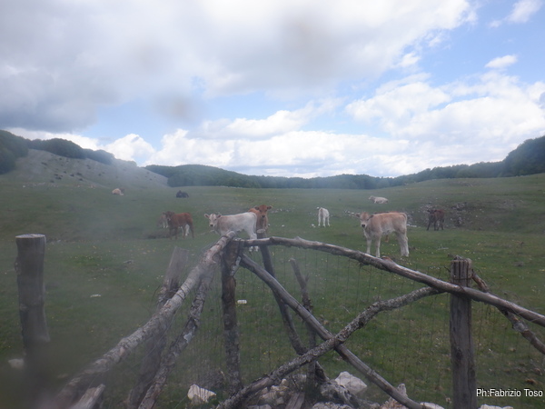 Quando esco trovo la spiegazione, qualche simpatico visitatore curioso ha aperto il cancello del recinto, magari per guardare meglio l’ingresso della grotta, ma poi non si e’ preso l’incomodo di richiuderlo. A lui vanno i nostri sentiti ringraziamenti e qualche pensiero troppo poco urbano da esprimere per scritto. Appena fuori dal recinto un folto gruppo di “mucchini curiosi” mi guarda con sospetto.