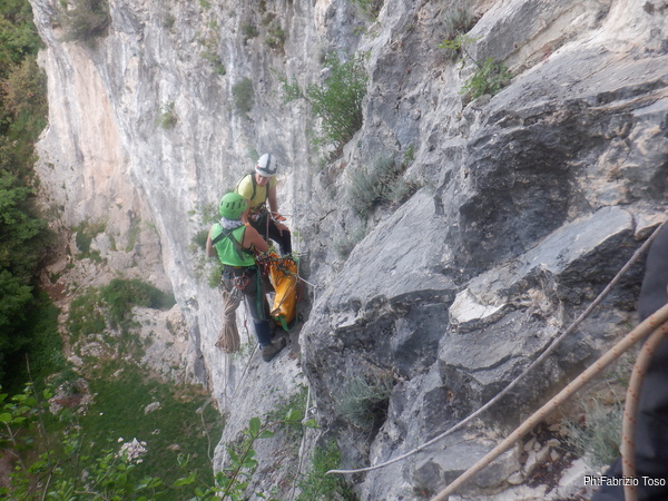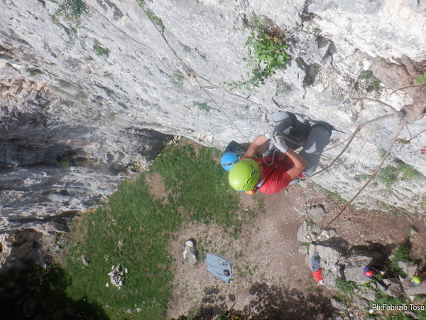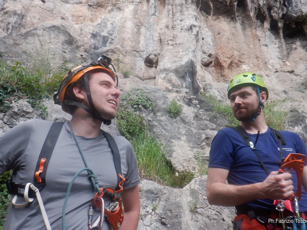 Dall’altro lato della parete Salvatore e Giulietto armano la “via lunga”.
