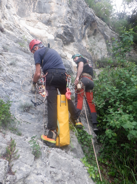 Qua da noi si inizia a scendere dopo aver approntato il traverso di collegamento.