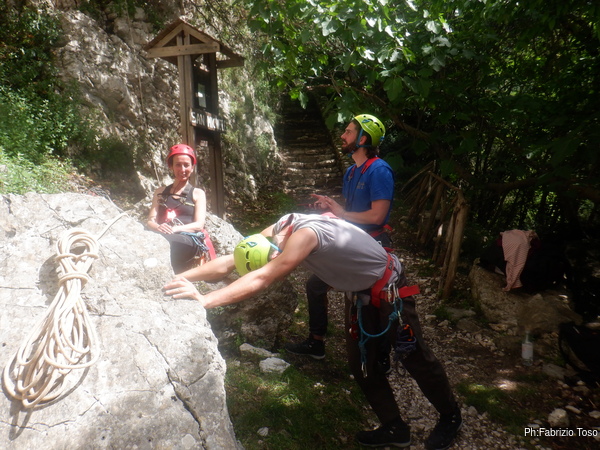 Giulio abbranca un allievo e va subito ad impegnare la via lunga.