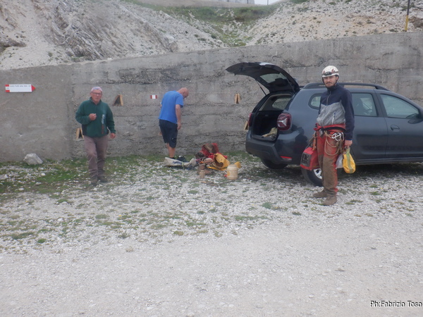 Tornati al piazzale riprendiamo la macchina e andiamo al solito parcheggio vicino alla grotta. I nostri amici ancora non si vedono ma sicuramente stanno per arrivare. Iniziamo a cambiarci con fiducia.