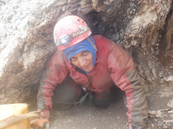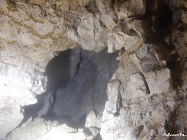 Mi stendo in avanti per vedere cosa ci offre la grotta. Non riesco a vedere molto perche’ ora davanti a me c’e’ una finestrella di roccia a occultare la prosecuzione. Inizio ad allargare anche la finestrella ma vengo richiamato all’ordine da Nerone che inizia a sentire stanchezza. Sarei stanco anche io, ma le novita’ vissute me l’hanno fatto dimenticare…per ora.