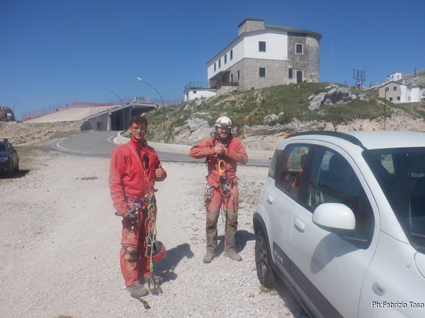 Li troviamo calmi e tranquilli e pronti a partire. Nerone ha ingannato l’attesa dando ad Alessio i primi rudimenti per l’utilizzo della attrezzatura speleo, gli torneranno utili se vorra’ continuare.