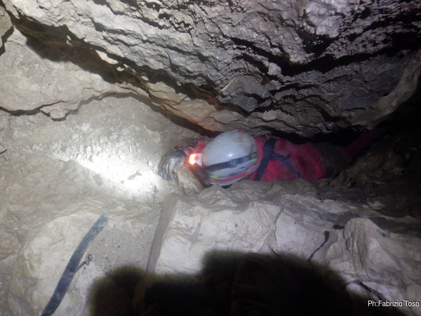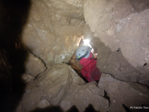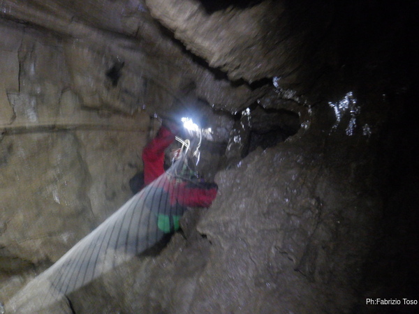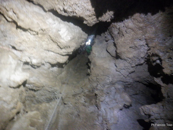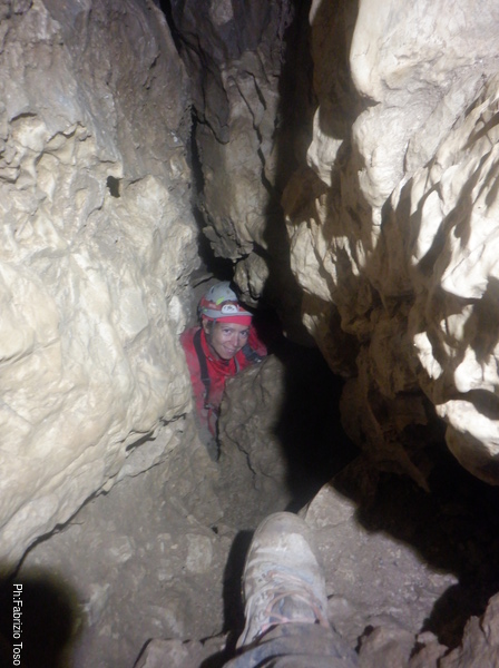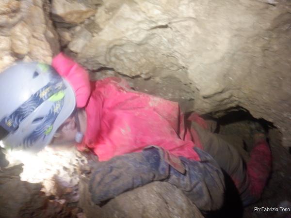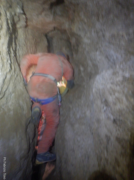 Pero’ devo dire che stavolta mi risultano meno strette, sara’ magari che qualcuno ci abbia dato una levigata in vista delle nuove esplorazioni in atto? Dalla base del P7 attendo che anche Alessia passi la strettoia.