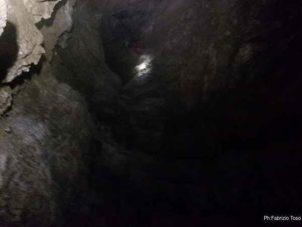 Quando siamo insieme alla base del pozzo spiego loro brevemente come prosegue la grotta e poi scappo avanti a raggiungere Fabio e Giuseppe, sono curioso di vedere cosa hanno combinato.