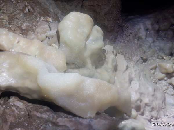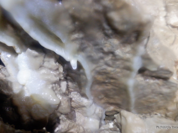 Mentre lei sale io cerco di fotografare alcune concrezioni visto che in questa parte di grotta sono assai rare.