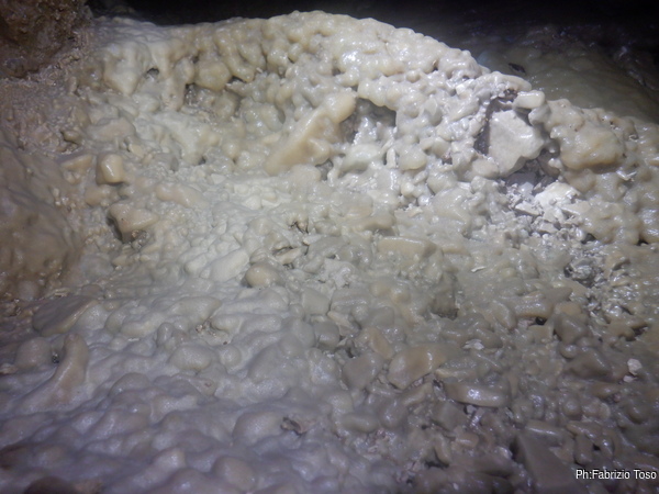 Si tratta di diramazioni ampie ma sicuramente poco frequentate poiche’ di solito le si passa di fretta per andare verso la fine della galleria e oltre. Una delle due termina con la solita frana, l’altra con un muro levigato di terra, fangosa in basso e piu’ sabbiosa in alto. Proviamo anche a grattare via un po’ di quella terra ma dopo una mezz’ora desistiamo.
