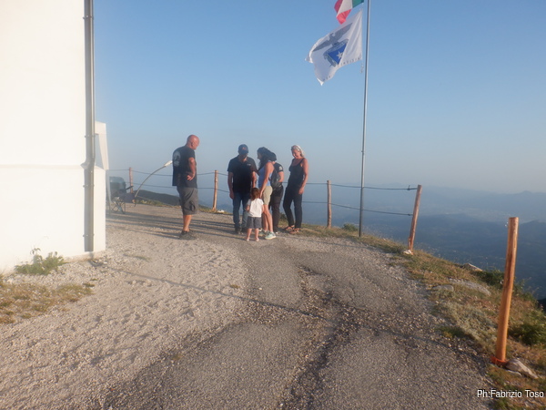 Ci fermiamo alla vela a riprendere fiato, a bere e a scambiare qualche parola prima di riprendere il cammino.