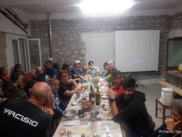 Al rifugio iniziamo a incontrare facce nuove di chi e’ arrivato mentre eravamo in grotta. Salutiamo tutti con allegria.