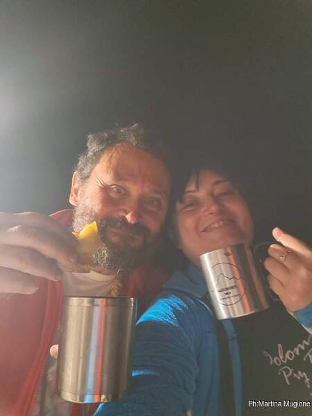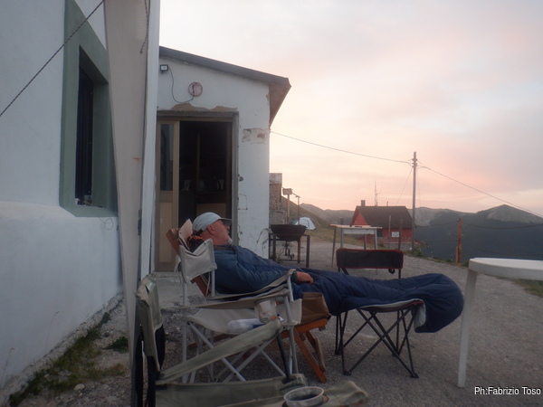 Al rifugio trovo una bella sorpresa. Come aveva promesso Giuseppe, del gruppo di Orvieto, e’ riuscito a raggiungerci al campo. Sono proprio felice di poterlo abbracciare dopo un lungo periodo in cui non ci siamo visti.