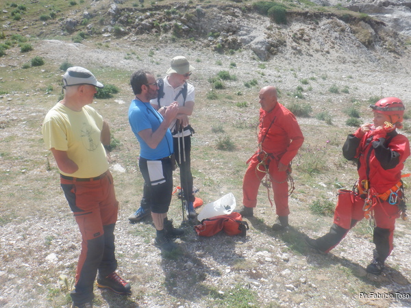 La giornata parte ufficialmente e vari gruppetti iniziano ad organizzarsi. Un gruppetto si organizza per un giro agli Urli. Alessia e Mariella organizzano un giro dalle parti di Campovano per rivedere gli ingressi di alcune grotte. Anche io nel frattempo mi sono organizzato e ho deciso di andare a lavorare alla grotta Gianni Mecchia. Subito trovo gradita compagnia in Fabio e Giuseppe. Nerone da bravo pensionato rimane al rifugio con Virginia.