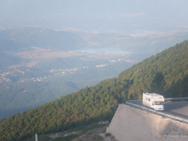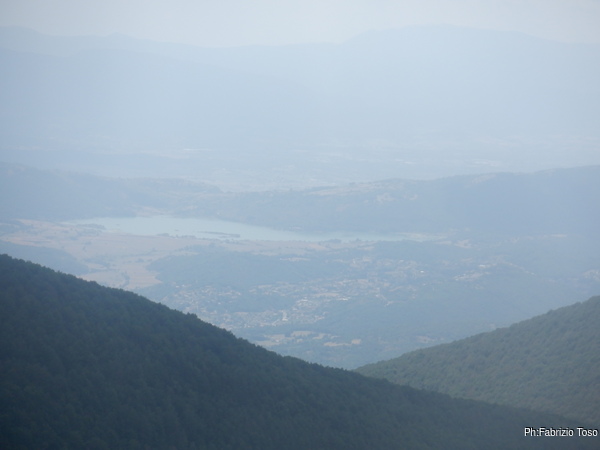 Da questo punto il lago di Canterno si vede molto bene. Senza che me lo chieda spiego ad Alessia che sono affezionato a quel lago perche’ da bimbo ci andai a pesca alcune volte. Allora era una vera avventura col trenino Roma-Fiuggi e qualche chilometro a piedi per arrivare al lago. In pratica tra andata e ritorno quasi 9 ore di viaggio per pescare meno di un’ora.