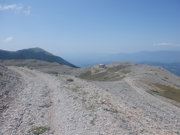 Dopo i saluti, proseguiamo spediti. Visto che non abbiamo tantissimo tempo prendiamo la strada piu’ veloce per raggiungere le grotte che vogliamo rivedere. Per questo motivo mi devo accontentare di vedere il rifugio Enel solo da lontano. Lo saluto con una foto.