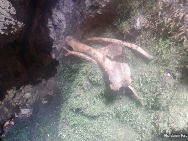 Mentre e’ giu’ a scavare sassi le passo anche la fotocamera cosi’ puo’ documentare quello che trova. La sento che lavora con accanimento per spostare delle pietre che sembrano nascondere una prosecuzione. Trova anche le immancabili ossa di qualche povero animale.