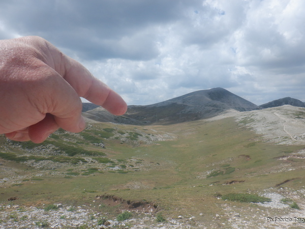 Riprendiamo la strada per il rifugio. A Campovano faccio questa foto dove indico il punto dove c’e’ il pilone numero 61 che da’ il nome alla grotta.