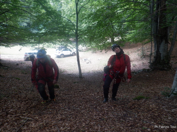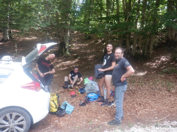 Con Linda, Angelo, Francesco e l’accompagnamento di Gabriele. In pratica noi andremo a continuare una risalita mentre Gabriele andra’ in ricognizione a cercare alcuni ingressi.