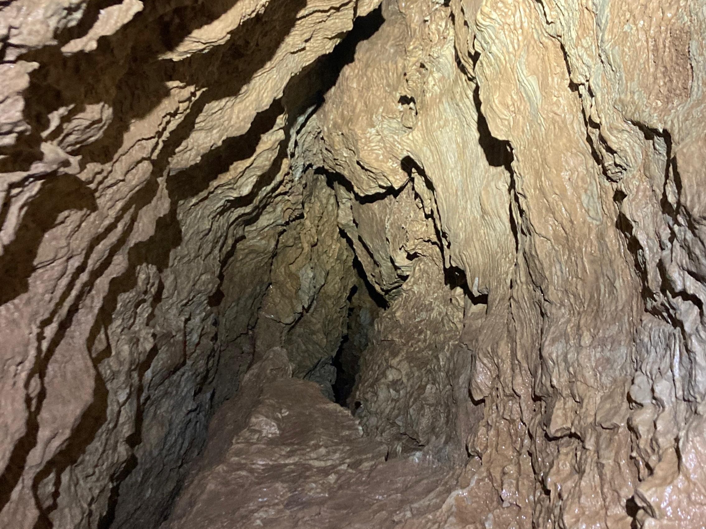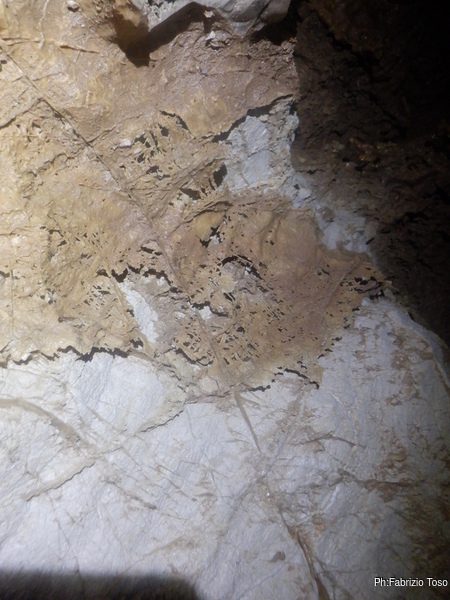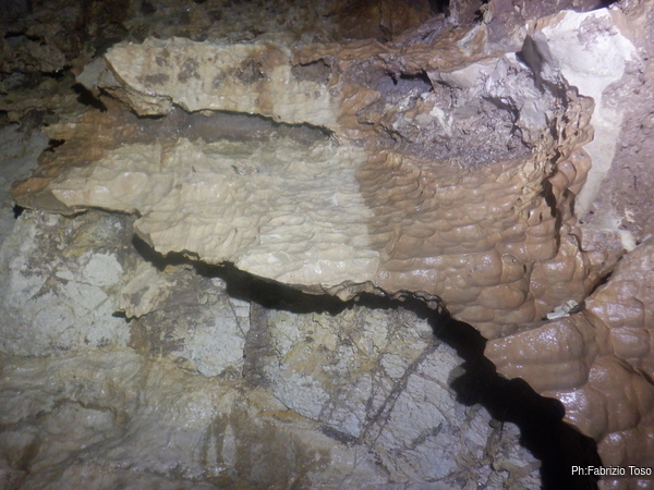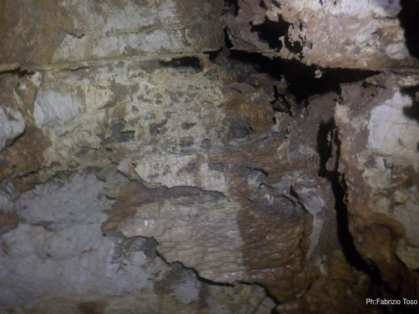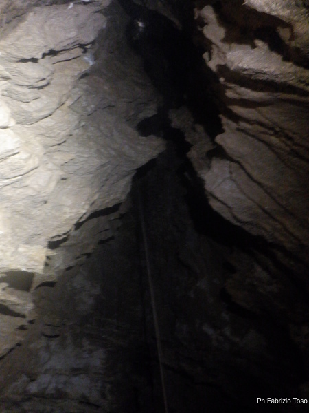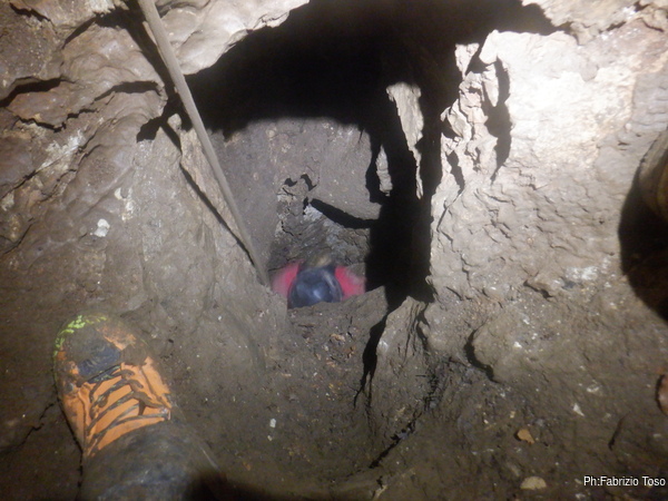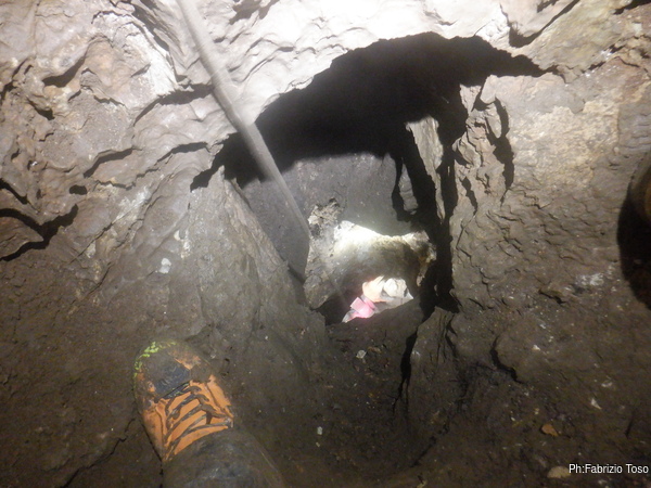 Dopo il noiosissimo spiegone, che i miei amici sopportano stoicamente, ci avviamo al cunicolo. Lo passiamo e siamo nel cuore della diramazione laterale. Anche qua mi fermo per raccontare che la diramazione prosegue dritta qualche metro, poi fa una curva a destra, si passa un punto strettino ma non troppo e si arriva dove le pareti si chiudono tra loro fino a diventare una fessura di qualche centimetro, impraticabile e praticamente senza speranze che possa essere allargata.