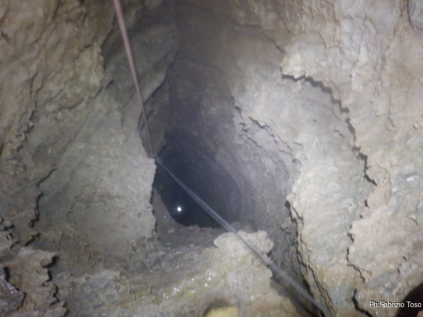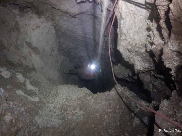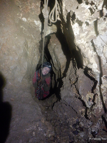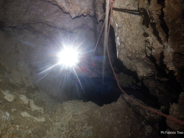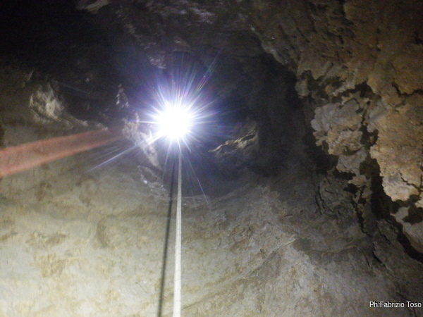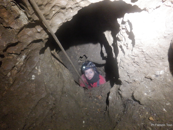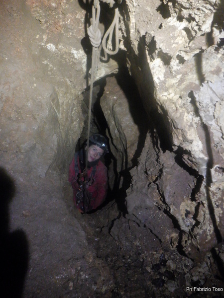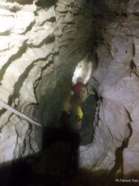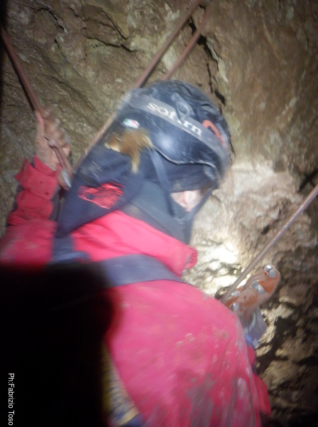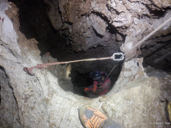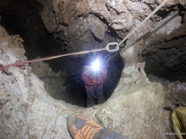 Pochi secondi per mettere la corda e siamo al primo pozzetto.