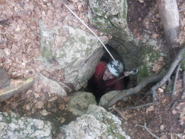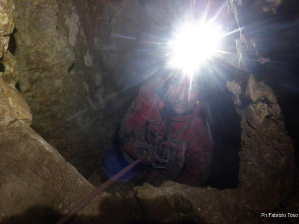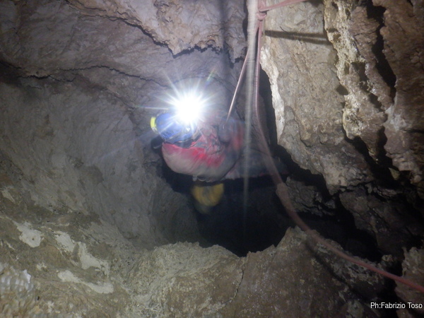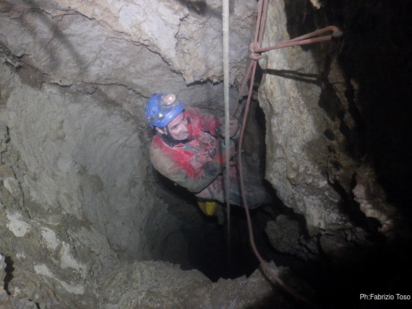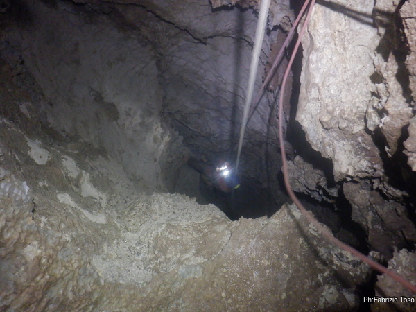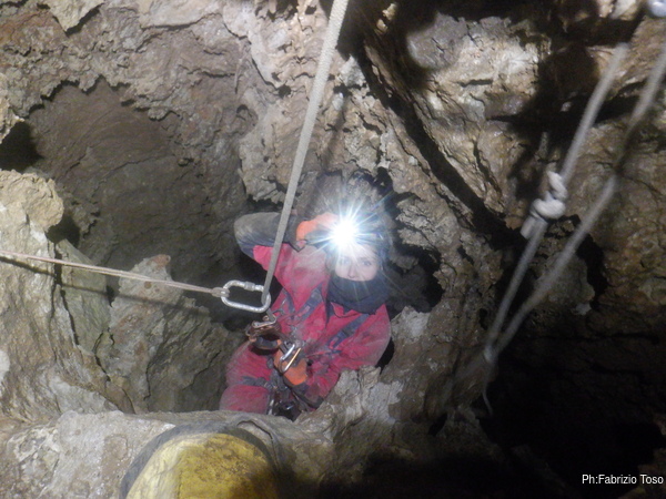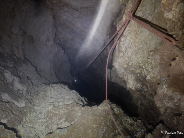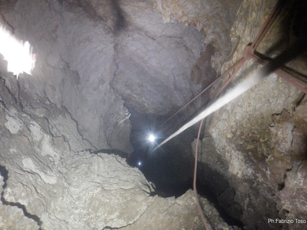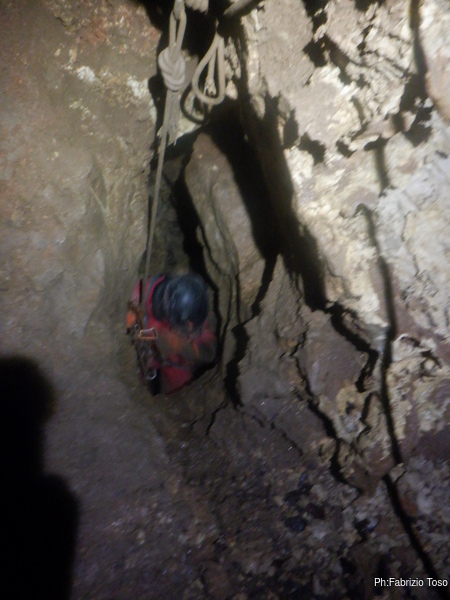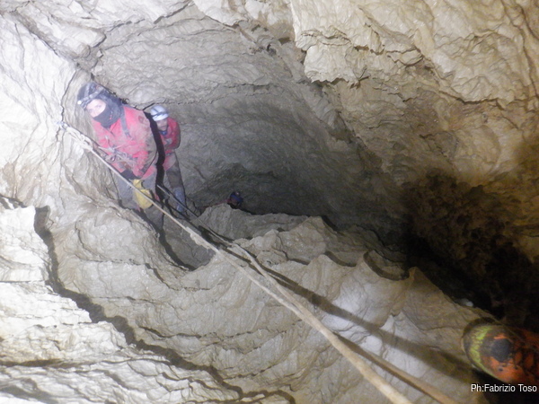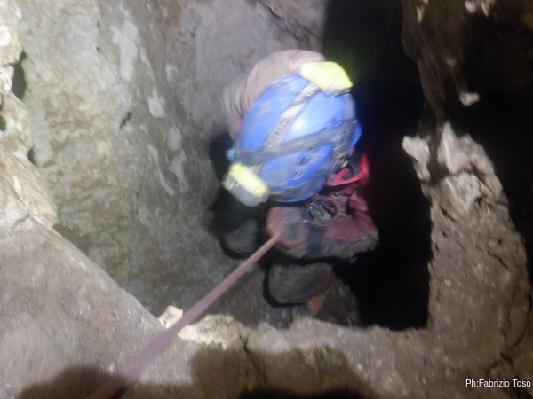 Pochi secondi per mettere la corda e siamo al primo pozzetto.
