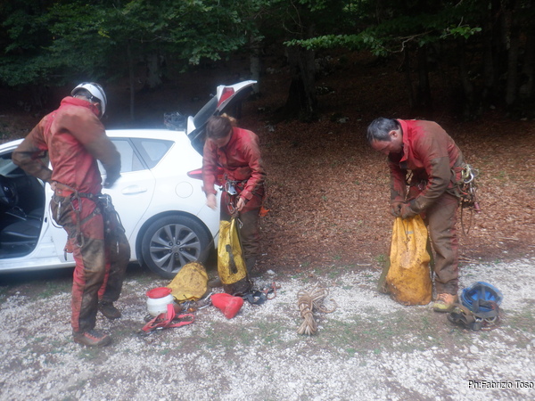 E poi subito a cambiarci facendo nel contempo la conta del materiale lasciato in grotta per poi relazionare il magazziniere del gruppo.