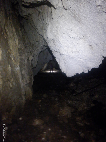 Tracce di uno scavo, fatto chissa’ da chi. Magari porta da qualche parte, in una zona nuova ma oggi non lo scopriremo. Passiamo oltre.