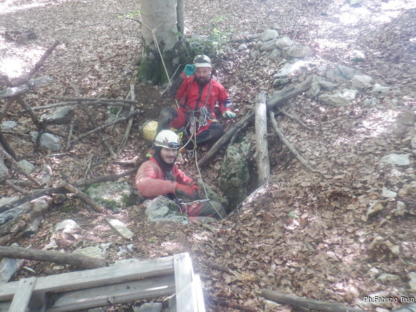 Con Luca in grotta a proseguire l’esplorazione. Supporto esterno di Gabriele e 2 amici di Luca.