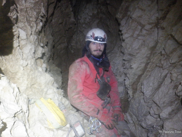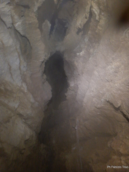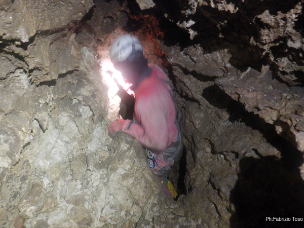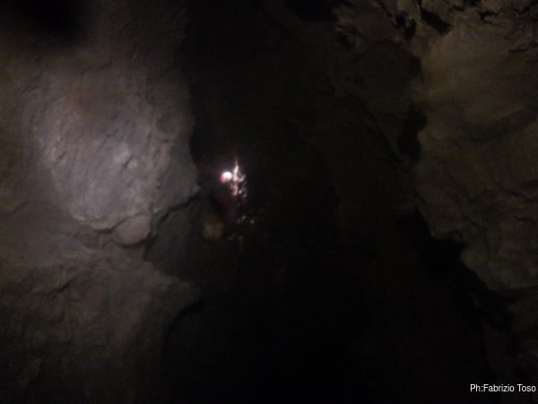 Nel frattempo Luca e’ salito a raggiungermi, gli racconto cosa ho scoperto finora e lo aggiorno sulla mia intenzione di chiamare questo primo tratto di nuova grotta: “Risalita Tommolino” in onore del mio nipotino che proprio stamane deve subire una piccola operazione.