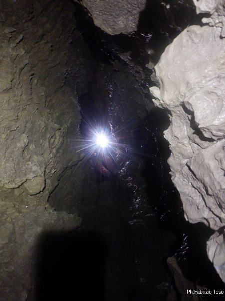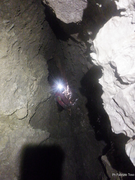 Senza soffermarci troppo scendiamo subito alla partenza del cunicolo dove parte la diramazione con la risalita da finire.