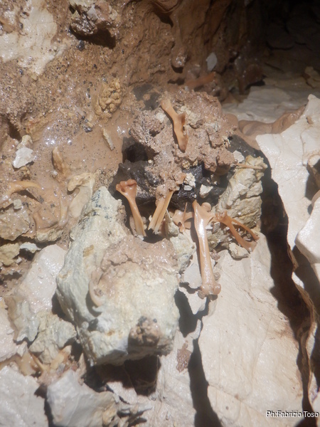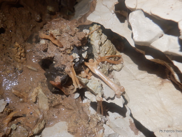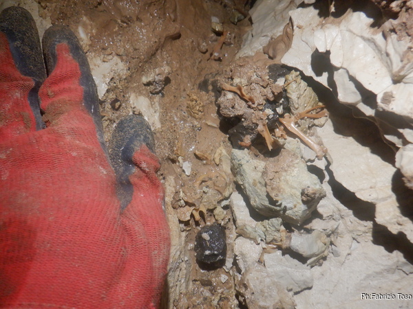Dagli scavi di Luca arrivano notizie confortanti…ma non troppo. Mi conferma l’arrivo di aria, infatti lamenta che la polvere del trapano gli arriva in faccia mentre lo usa. Inoltre spostando i primi sassi ritrova un mucchietto di ossa. Purtroppo la roccia e’ molto compatta e il trapano puo’ poco o nulla. Ma lui continua a provarci con impegno.