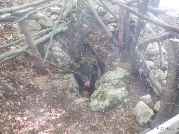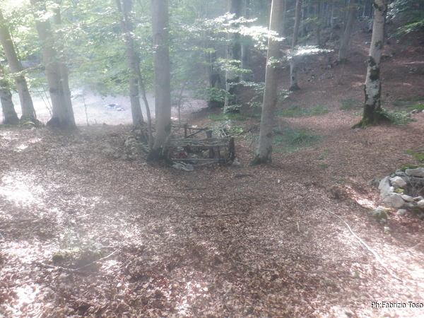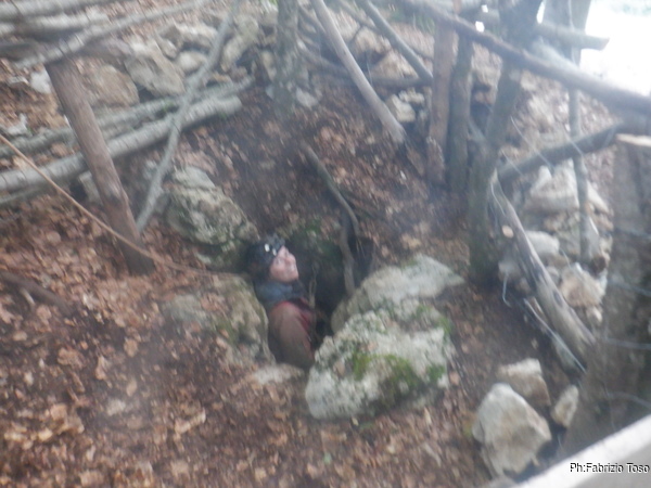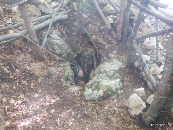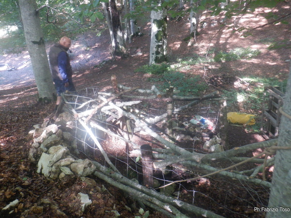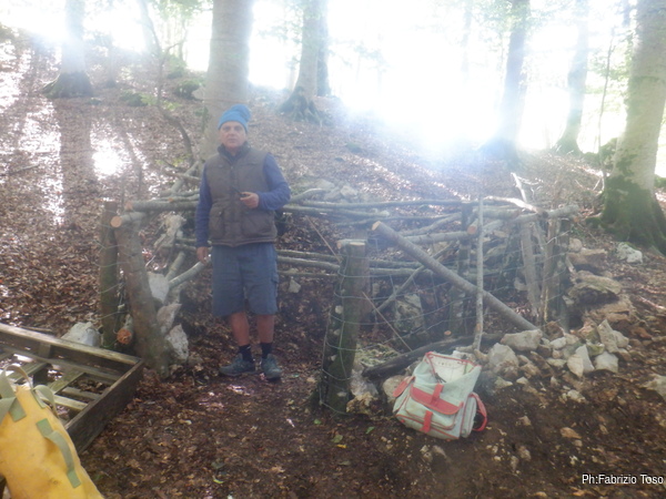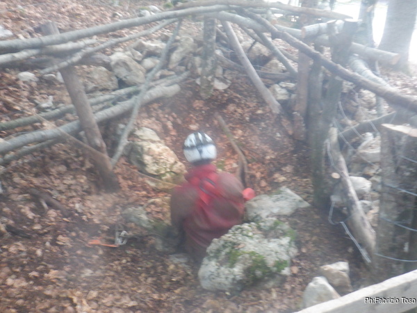 Quando siamo arrivati all’ingresso della grotta abbiamo trovato Nerone che nei giorni scorsi aveva costruito un recinto intorno alla grotta, con sassi, rami e rete metallica, per evitare che qualcosa (o qualcuno) ci caschi dentro involontariamente.