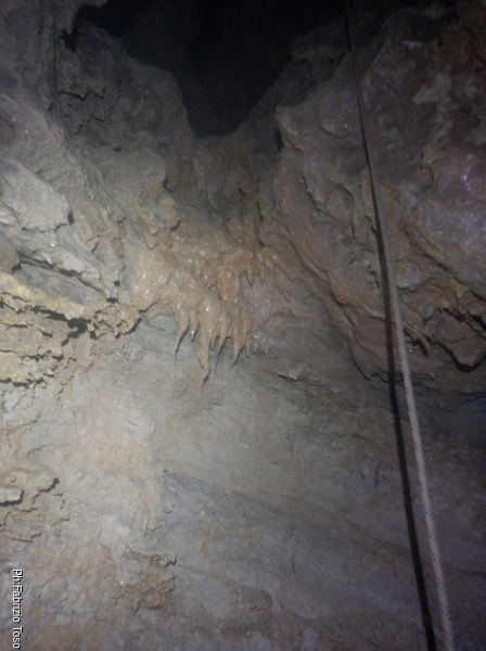 Dopo il primo tratto risalito la scorsa volta, una visita successiva di Bibbo e Luca ha permesso di salire ancora un po’ più su e trovare anche un piccolo pozzo, lungo una ventina di metri circa.