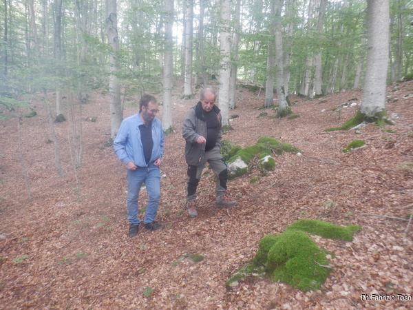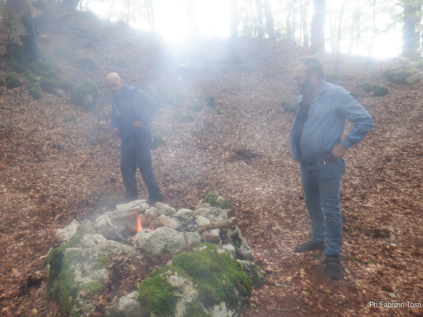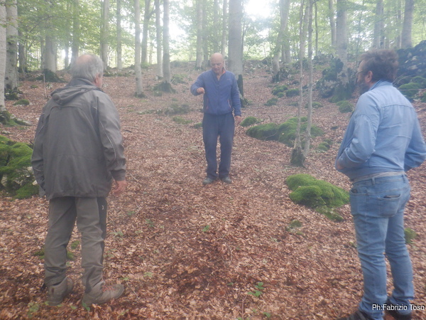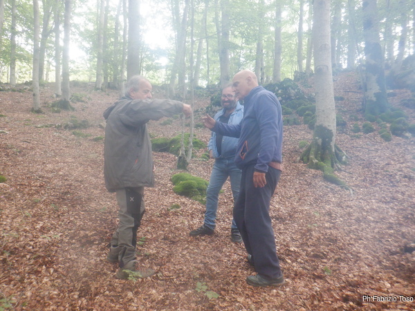 Iniziamo subito col pendolo. Nerone ed io ci mettiamo comodi ad osservare Fabrizio e Gabriele che girano per il bosco nei dintorni della grotta col pendolo in mano commentando entusiastici ogni oscillazione.
